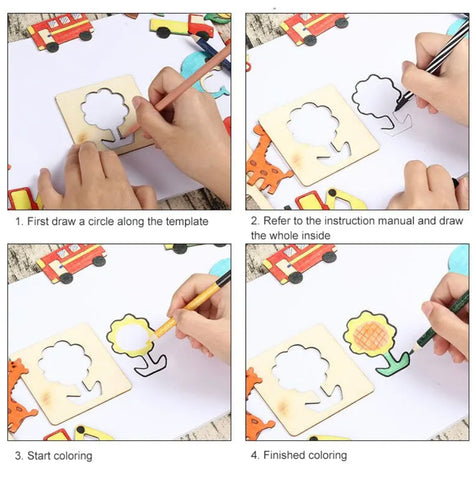 Jouet de Dessin Montessori pour Enfants – Pochoirs de Peinture Créatifs DIY | Activité Artistique et Éducative